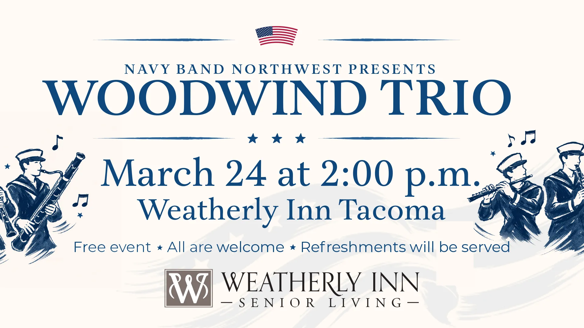 You and your family and friends are invited to come hear the Navy Band Northwest as it presents its Woodwind Trio! It’s free, all are welcome, and refreshments will be served.